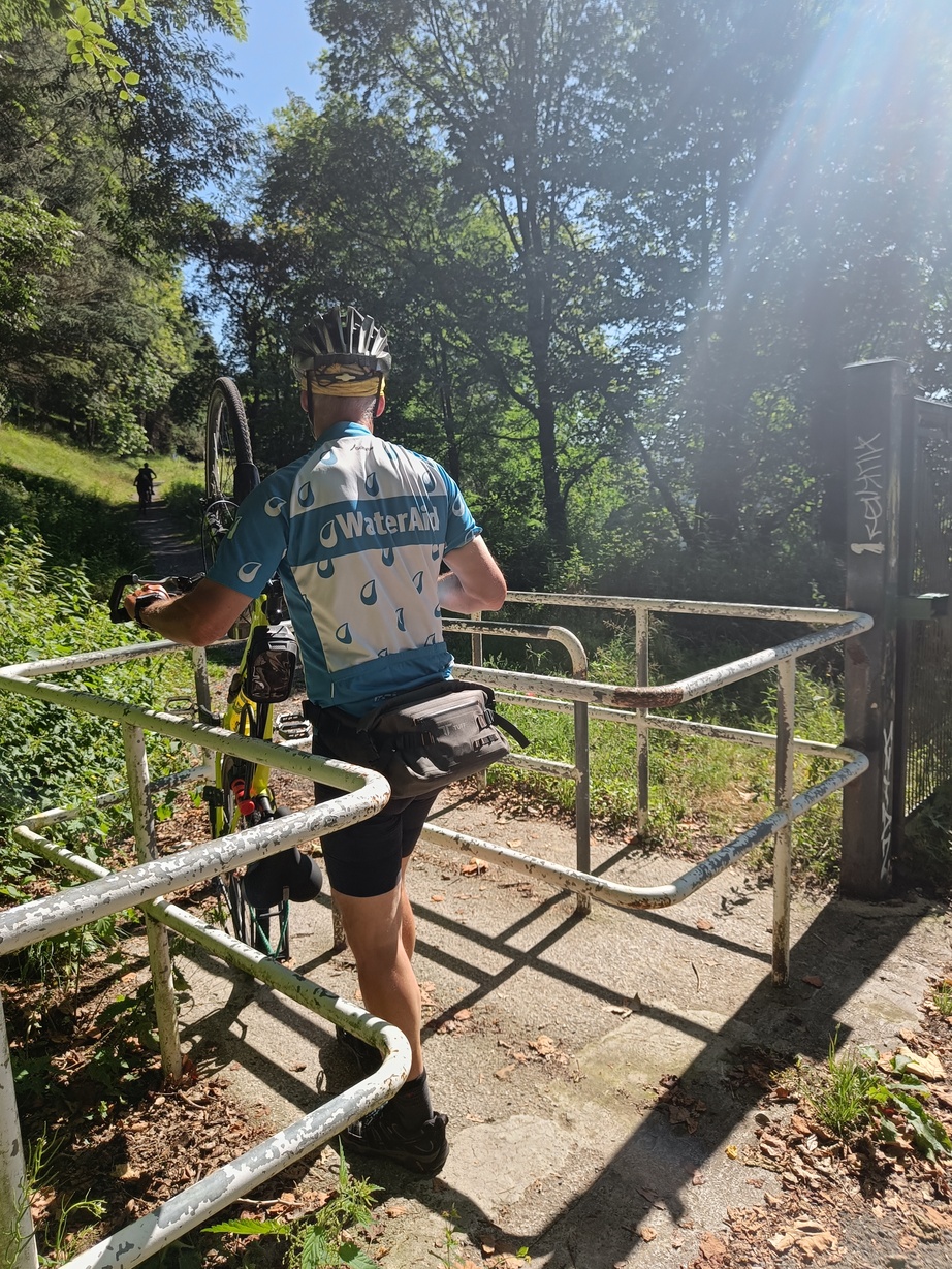 This is the second time in two days of cycling that we've found steps on the planned route. We'll be scrutinizing the route in Plotaroute this evening to see if we can see why this might be. Did we accidentally plot a walking rather than a cycling route? Is the underlying map data to blame?